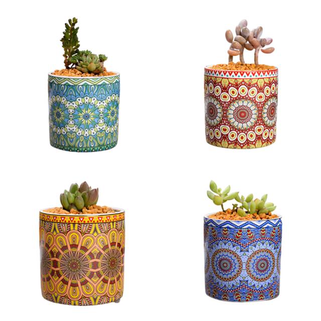 4本/セット北欧スタイルのマンダラパターンセラミックフラワーポット卓上装飾