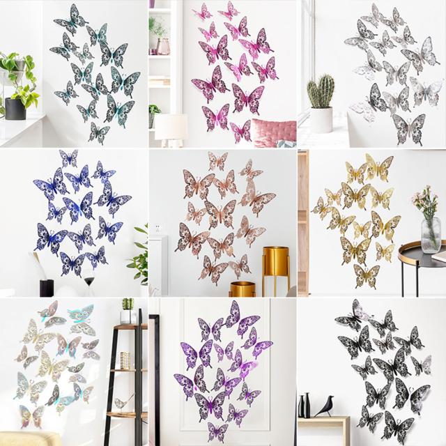 12個/セット3D中空バタフライシリーズ装飾ウォールステッカーDiyアート真珠光沢のある家の装飾ウォールステッカー