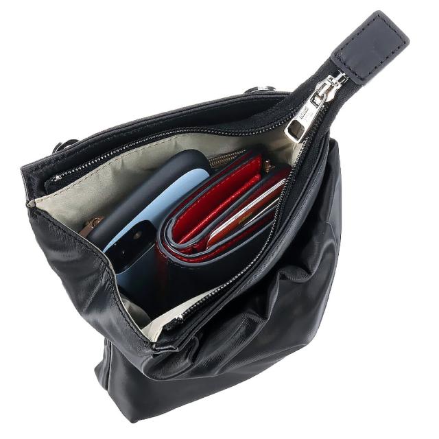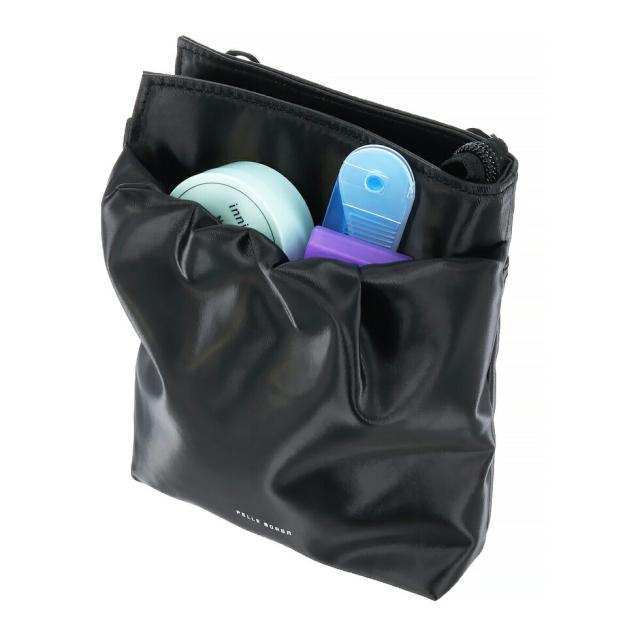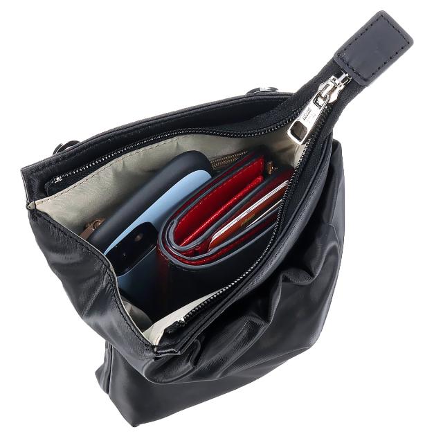本体にミニ財布とスマホ、ポケットにハンカチやリップ、パスケースなどがコンパクトに収まります。ワンマイルのお出かけに最適です。
