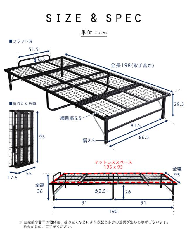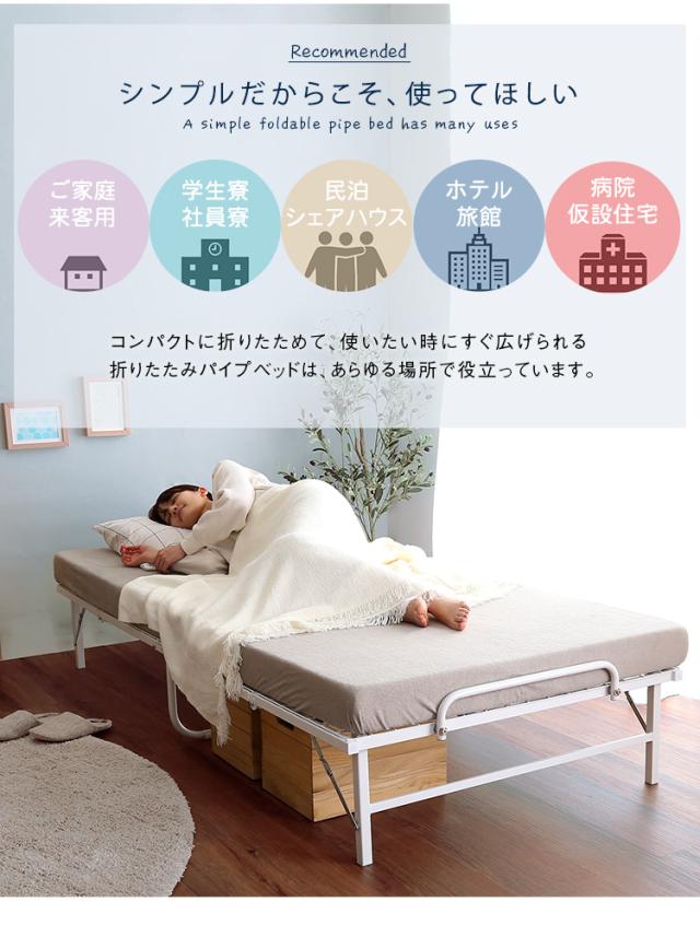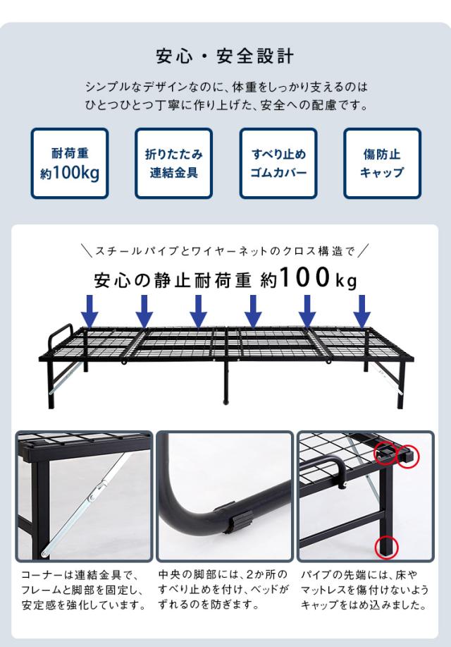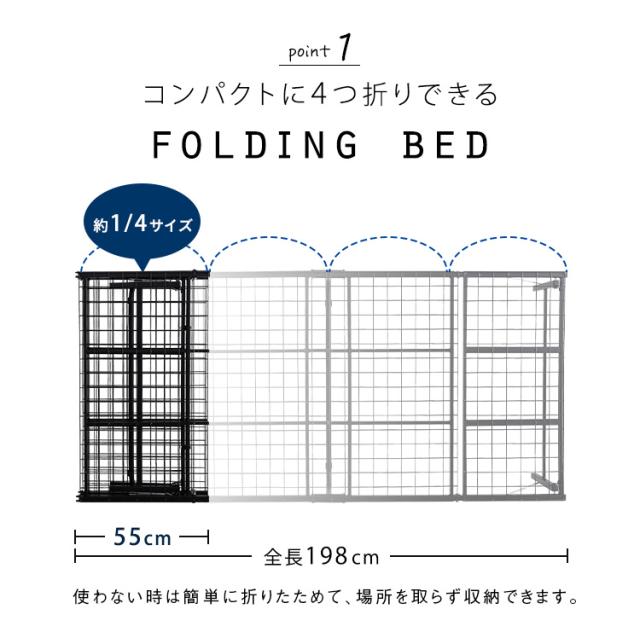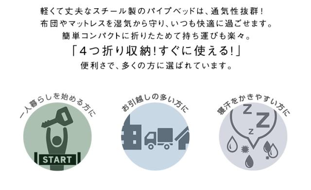 4つ折り 折りたたみパイプベッド Vierte(フィルテ) 2色展開 軽くて丈夫 スチール製 折り畳み 通気性抜群 一人暮らし シングルベッド ベッドフレーム ベッド