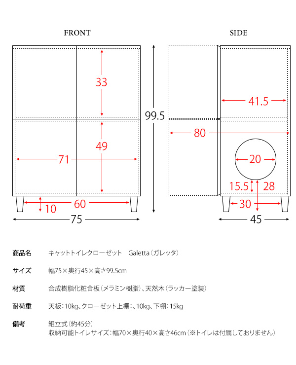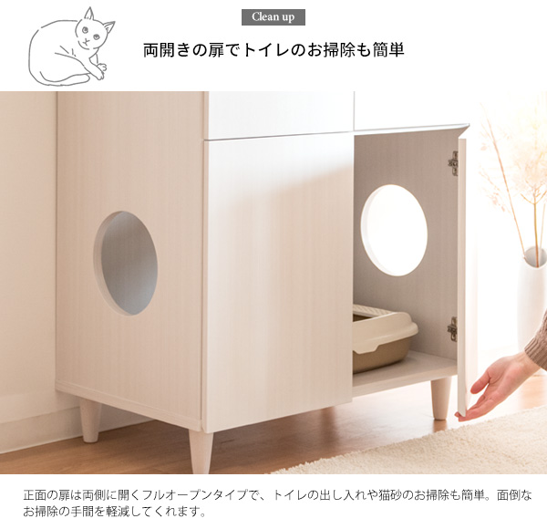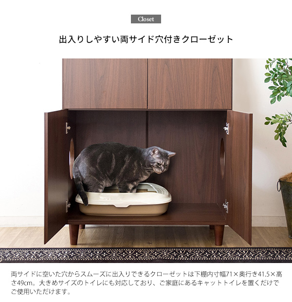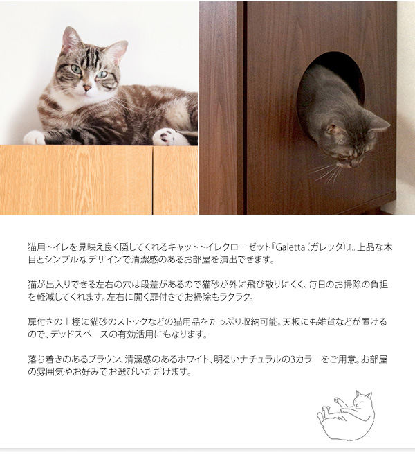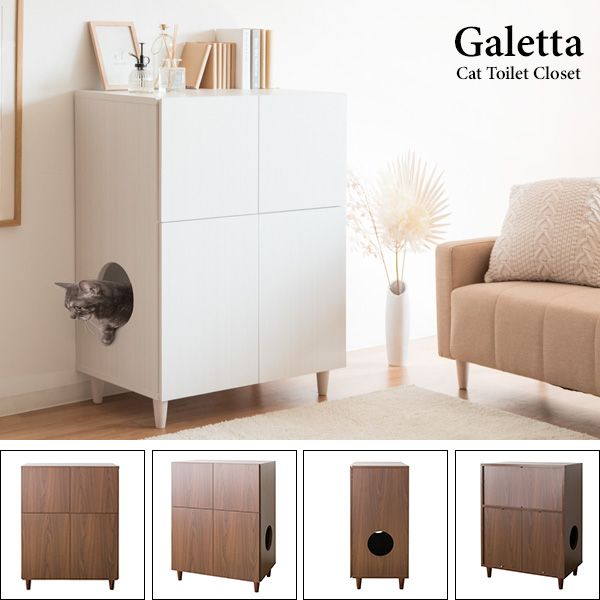 キャットトイレクローゼット Galetta(ガレッタ) 猫用トイレ 猫用トイレ隠し キャットトイレ 猫用家具 猫砂飛散防止 猫トイレ収納 両開き扉 猫用クローゼット