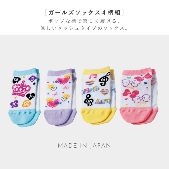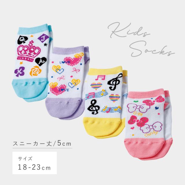 靴下,くつした,くつ下,ソックス,4足組,セット,キッズ,子供,子ども,こども,ジュニア,女の子,女子,ガールズ,スニーカー,スニーカー丈,くるぶしソックス,くるぶし,メッシュ,メッシュ編み,日本製,薄手,薄い,春夏,春,夏,暑い,季節,涼しい,爽やか,さわやか,さらっとしている,さらさら,サラサラ,通気性,蒸れない,ムレない,蒸れにくい,ムレにくい,パステルカラー,ポップ,ハート,リボン,音符,王冠,サックス,青,ブルー,パープル,紫,イエロー,ピンク,洗い替え,快適,心地よい,シンプル,カジュアル,おしゃれ,お洒落,オシャレ,かわいい,可愛い,ベーシック,定番,ヘビロテ,ファッション,コーディネート,普段使い,デイリーユース,おすすめ,オススメ,素材,生地,気持ちいい,家族,ファミリー,お出かけ,外出,旅行,小学生,幼児,園児,保育園,幼稚園,入園,入園準備,通園,入学,通学,育児,子育て,18cm,18センチ,19cm,19センチ,20cm,20センチ,21cm,21センチ,22cm,22センチ,23cm,23センチ,18-23cm,