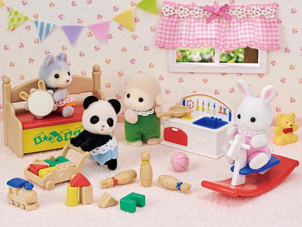しろウサギの赤ちゃん ソフィー、パンダの赤ちゃん(はいはい) ロイと、カラフルなおもちゃのセットです。*おままごとやボーリングなど、赤ちゃんたちのおもちゃがたくさん入っています。*オールインワンセットなのでこの商品だけで楽しく遊べます。"