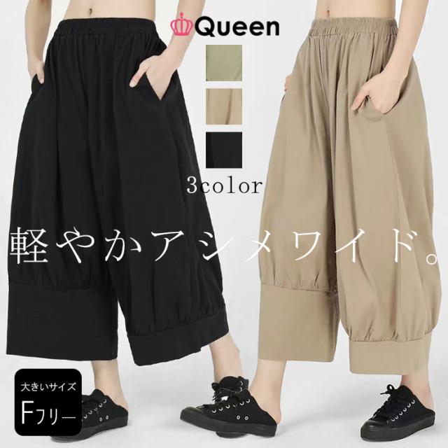 大きいサイズ レディース ワイドパンツ ボールパンツ サルエル ウエストゴム 股上深め 夏 LL 3L 4L 5L 6L メール便可 (t220306)