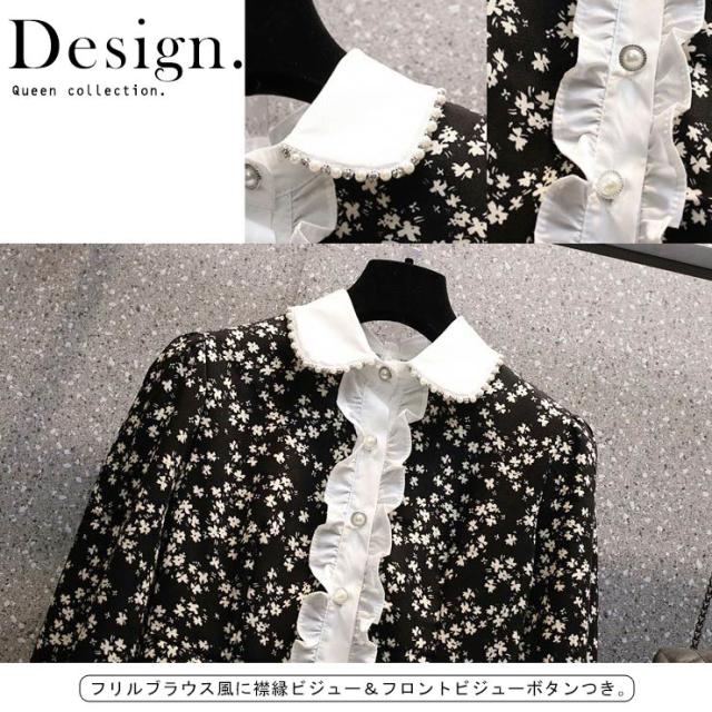 小花柄ビジューブラウスドッキングワンピース