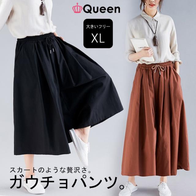 大きいサイズの服 スカートのような贅沢ボリュームガウチョ