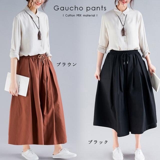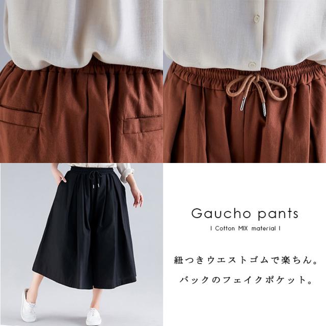 ★☆大きいサイズ レディース ガウチョパンツ ワイド ウエストゴム 無地 八分丈 春 秋 LL 3L 4L 5L 6L ブラック ブラウン 新入荷 メール便不可☆★