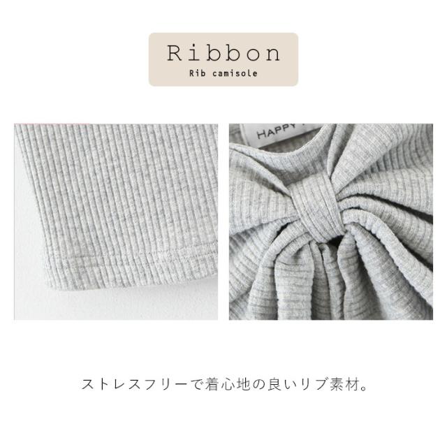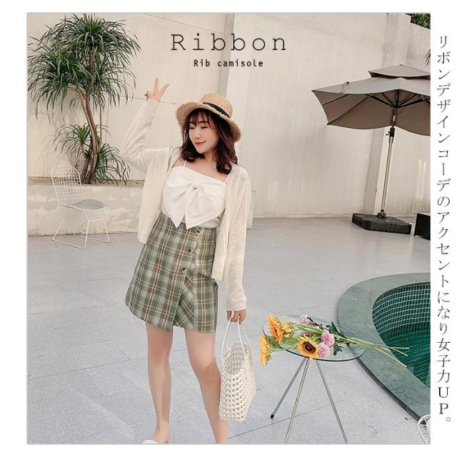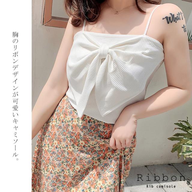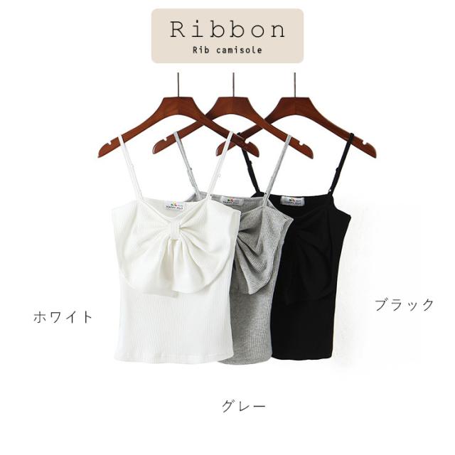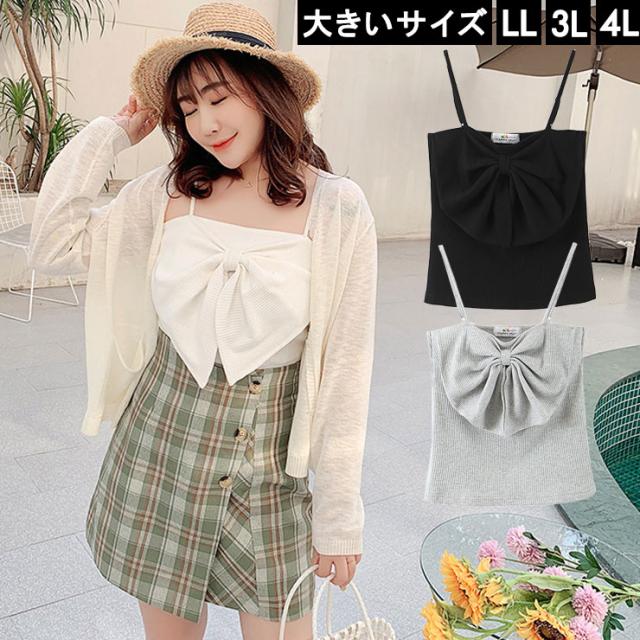 ★☆大きいサイズ レディース キャミソール リボン インナー リブ素材 LL 3L 4L ブラック グレー ホワイト 10代 20代 30代 13号 15号 17号 新入荷 メール便可☆★