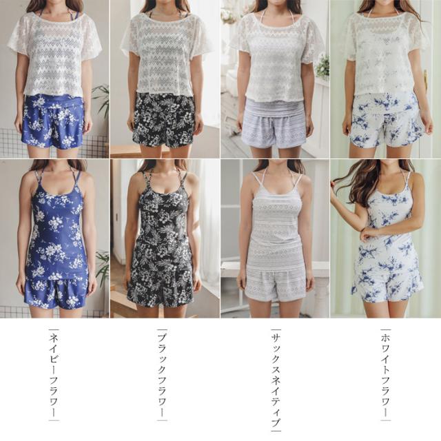 ★☆大きいサイズ レディース セパレート水着 カバーアップつき キャミパンツ 3点セット LL 3L 4L 5L ブラックフラワー サックスネイティブ 全4色 新入荷 メール便不可☆★