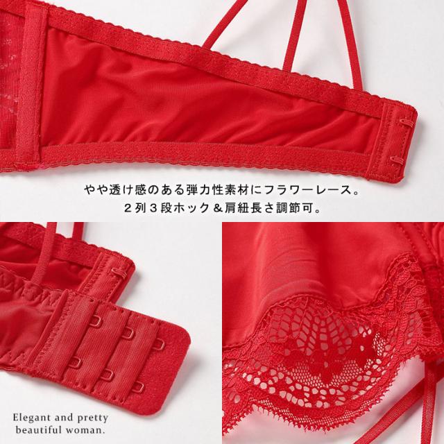 | 素材 | (レース)ナイロン91.6% スパンデックス8.4% (側面裏地)(ショーツ生地)ナイロン87.3% スパンデックス12.7% (カップ裏地)ナイロン100% (クロッチ裏地)コットン100% |