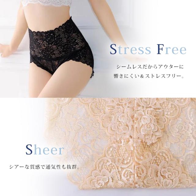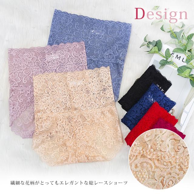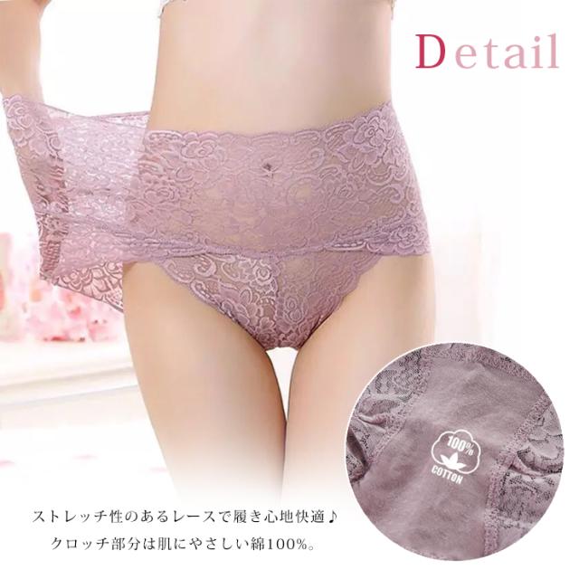 大きいサイズ ショーツ 深ばき レディース 下着 ハイウエスト 総レース お腹すっぽり インナー ランジェリー M L LL 3L 4L (165397)