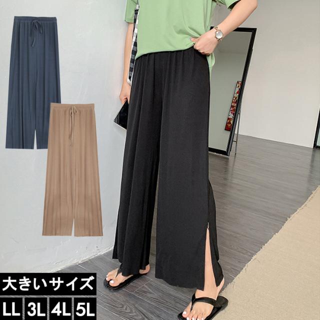 ★☆大きいサイズ レディース ワイドパンツ スカーチョ スカンツ リブ LL 3L 4L 5L ブラック ベージュ ブルーグレー 10代 20代 30代 40代 13号 15号 17号 19号 新入荷 メール便不可☆★