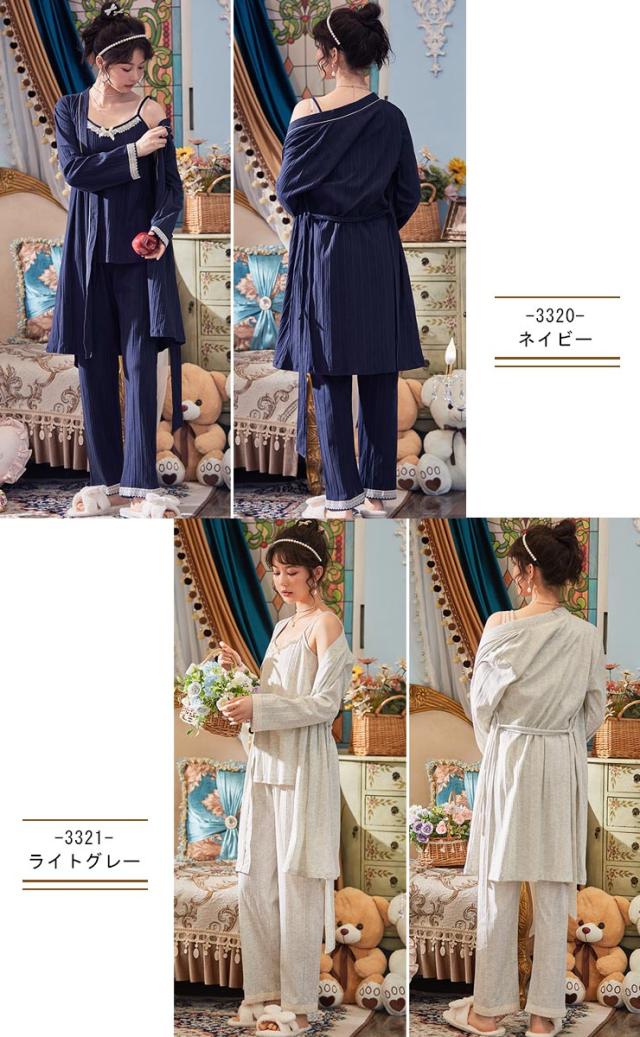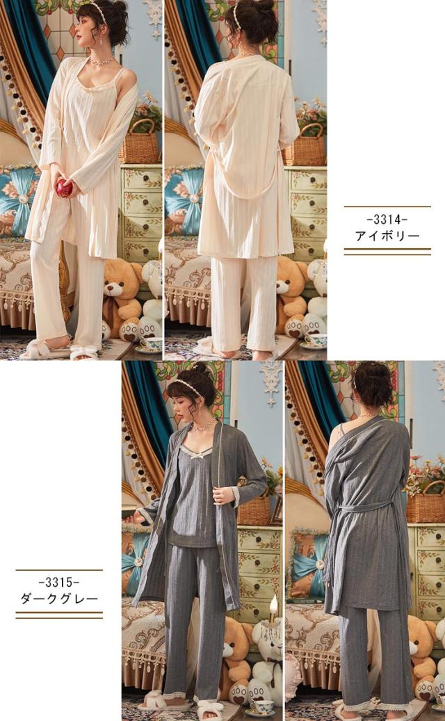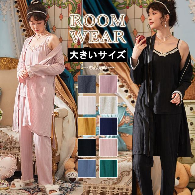 大きいサイズのルームウェア ガウン&キャミ&パンツ3点セット