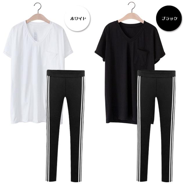 バックロゴTシャツ&ラインレギンスパンツセット