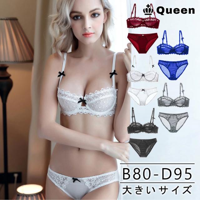 ★☆大きいサイズ レディース ブラジャー ショーツセット 下着 B80 B85 C80 C85 C90 C95 D80 D85 D90 D95 L LL 3L 4L 透かしレース 超薄 2018冬 新入荷 メール便可☆★