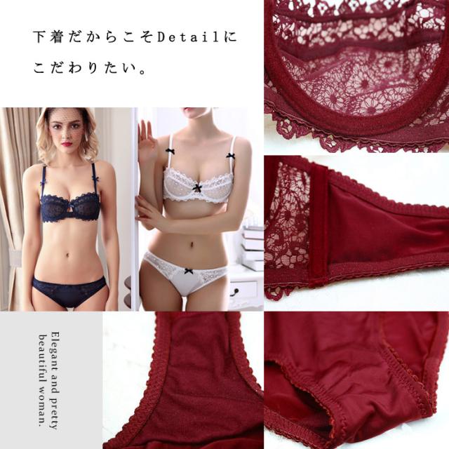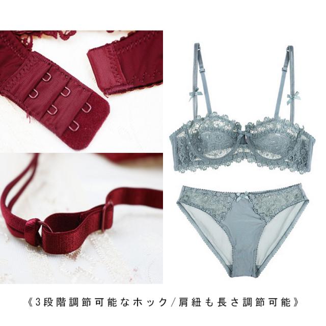 レース&Wストラップ1/2カップブラショーツセット