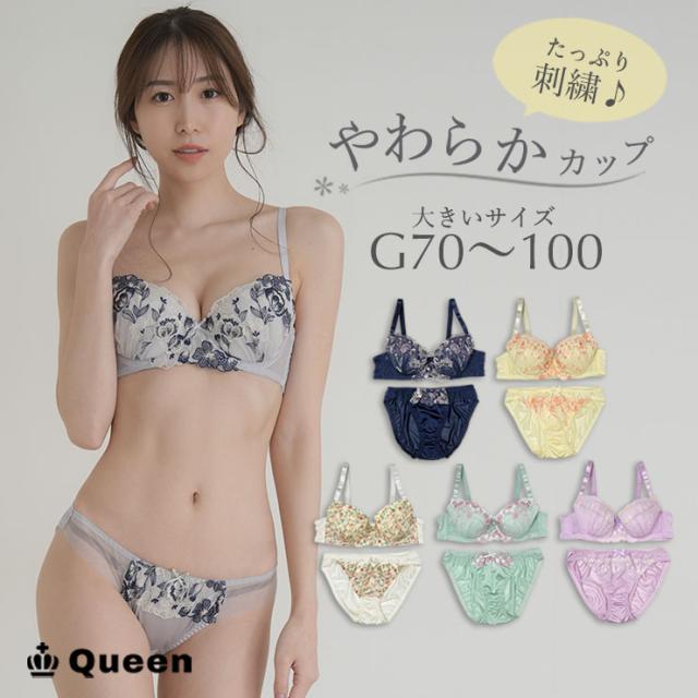 ★☆ブラショーツセット 大きいサイズ レディース 下着 刺繍レース パッド付き やわらか トリコット 下着セット ゆったり G70 G75 G80 G85 G90 G95 G100☆★