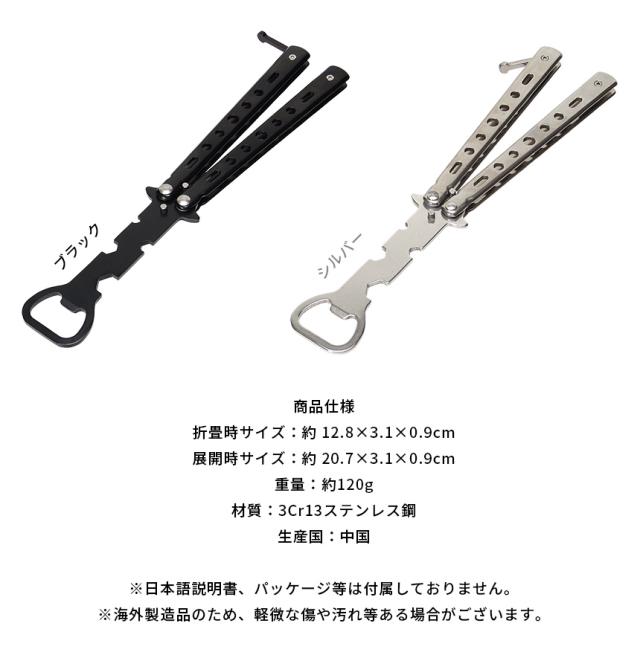 バタフライナイフ 型 オープナー 栓抜き 練習用 EDC スパナ アウトドア キャンプ 調理 料理 BBQ おしゃれ メンズ かっこいい