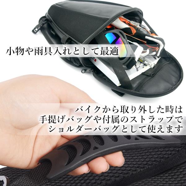 ・バイクから取り外した後は手提げバッグとしてや、付属のストラップでショルダーバッグとして使えます。