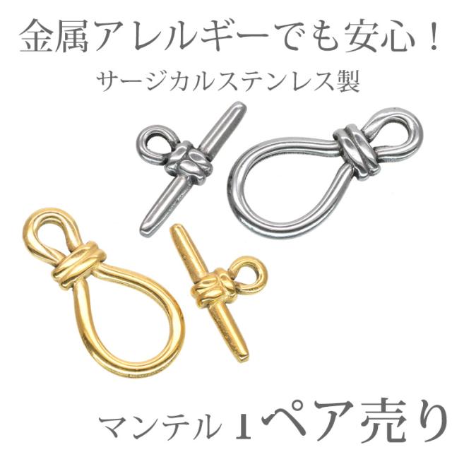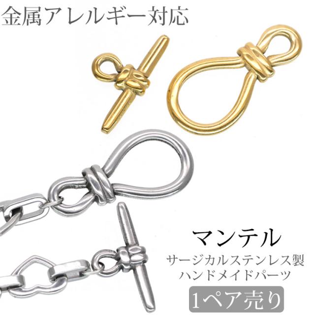 サージカルステンレス製のアクセサリーパーツ、ブレスレット金具(マンテル)です。 太めチェーンを留めるのにおすすめの金具です。 医療用にも使用されるサージカルステンレス製ですので、金属アレルギーの方も安心してご利用いただけます。