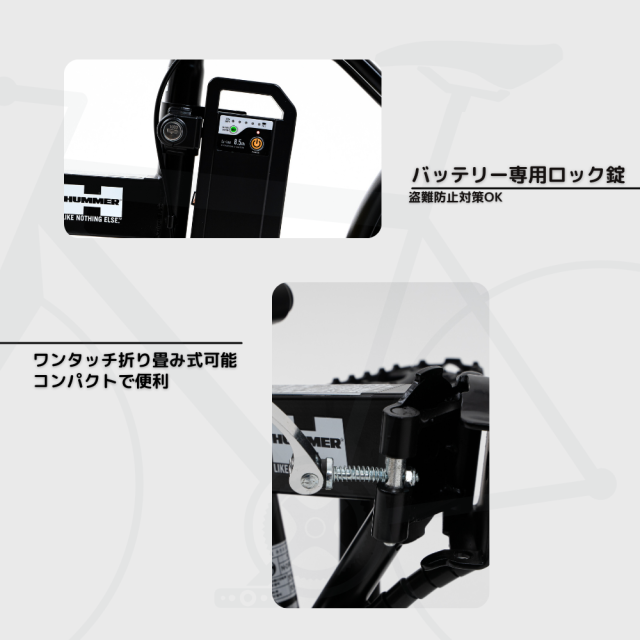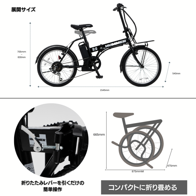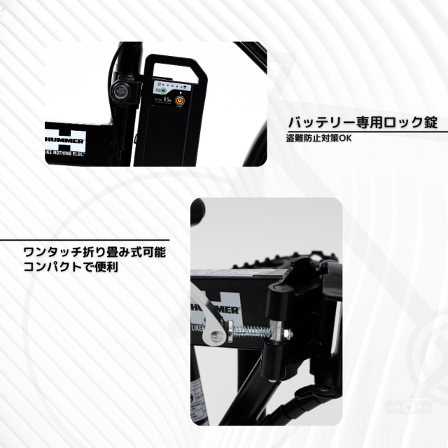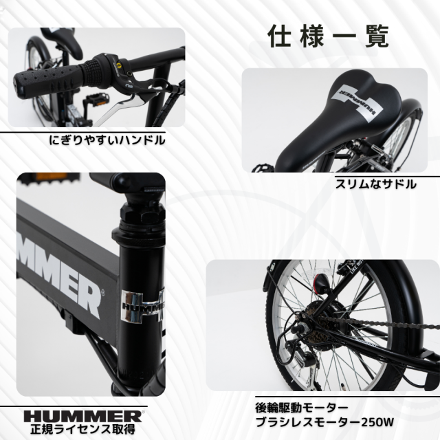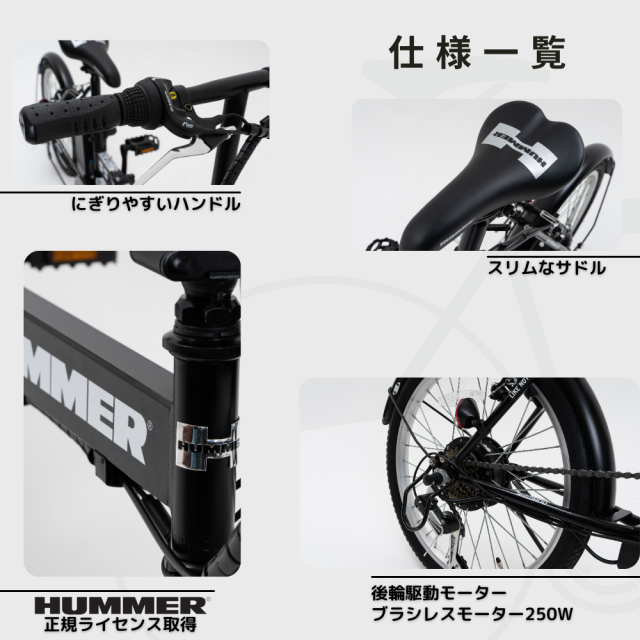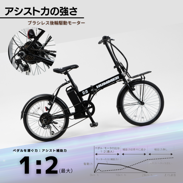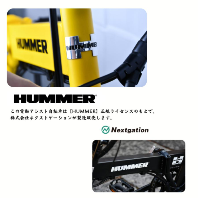 | プレミアム5年保証!HUMMER電動アシスト自転車N-DROHM20 20インチ折り畳み 外装6段変速搭載 リチウムバッテリー8.5Ah ハマー電動アシスト自転車 イエローとブラック 電動自転車 | |