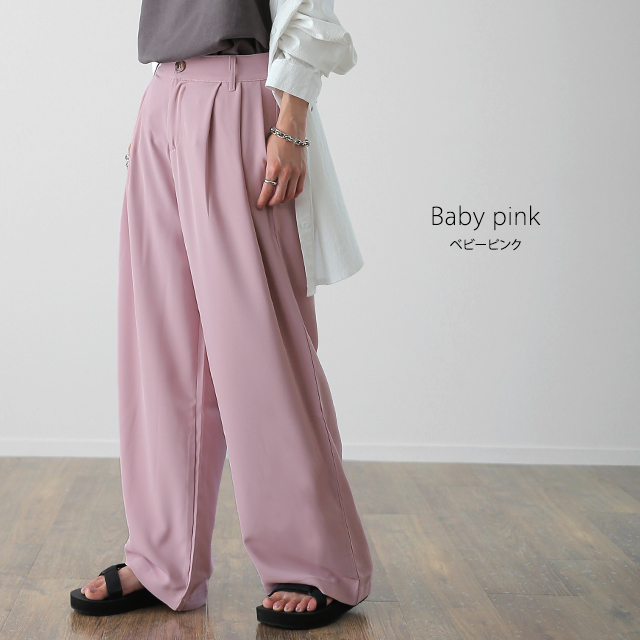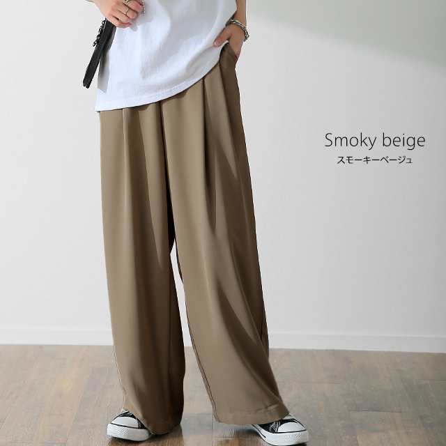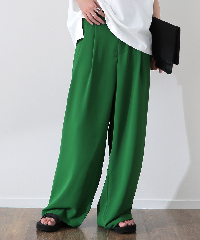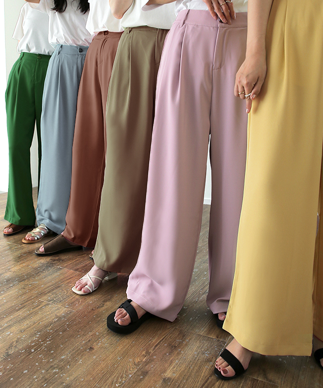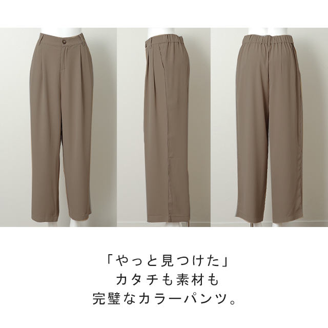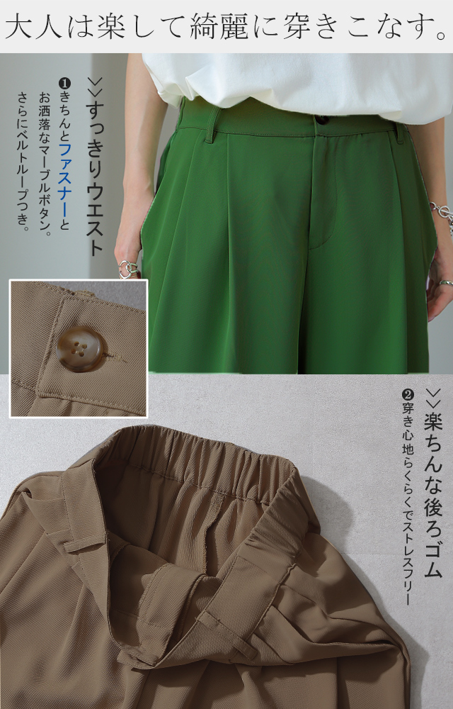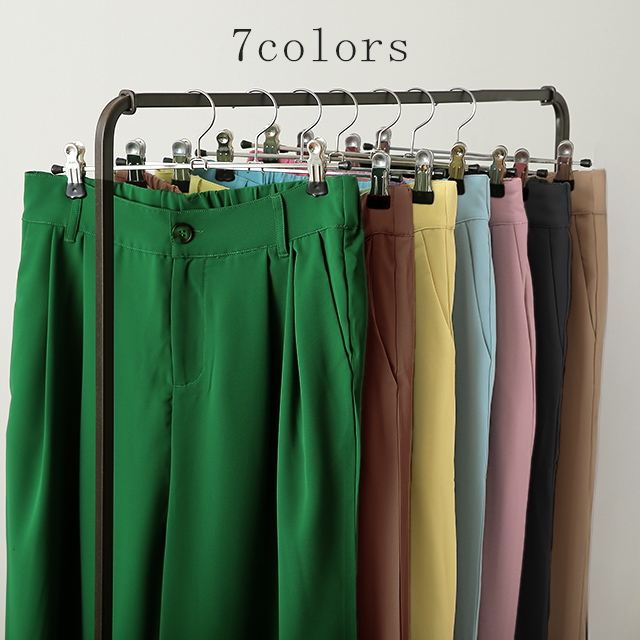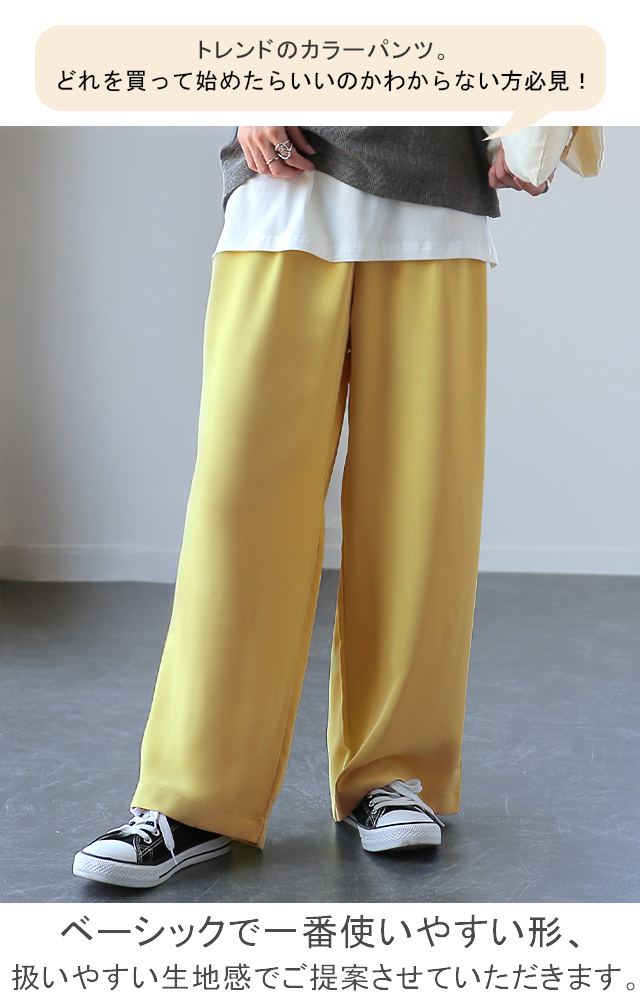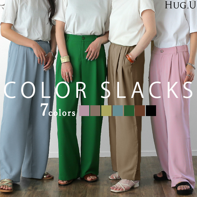 パンツ「噂の カラーパンツ 」 スラックス パンツ レディース ワイドパンツ ワイド ロング 大きいサイズ ボトム 体型カバー ボトムス ストレート ハイウエスト タック タックパンツ ゴム きれいめ オフィス HUG.U 夏 秋 秋新作
