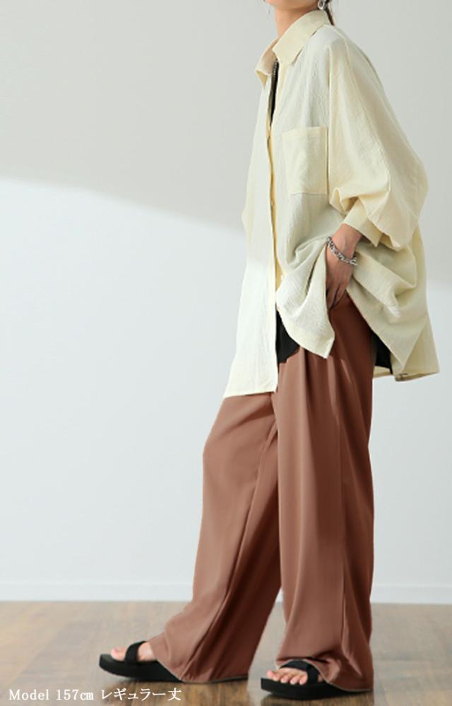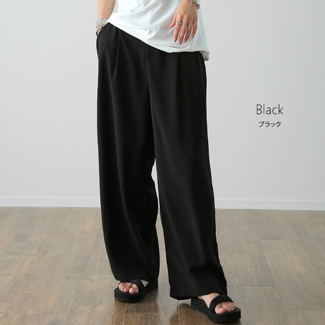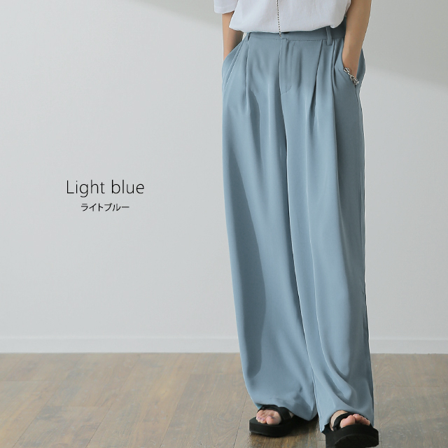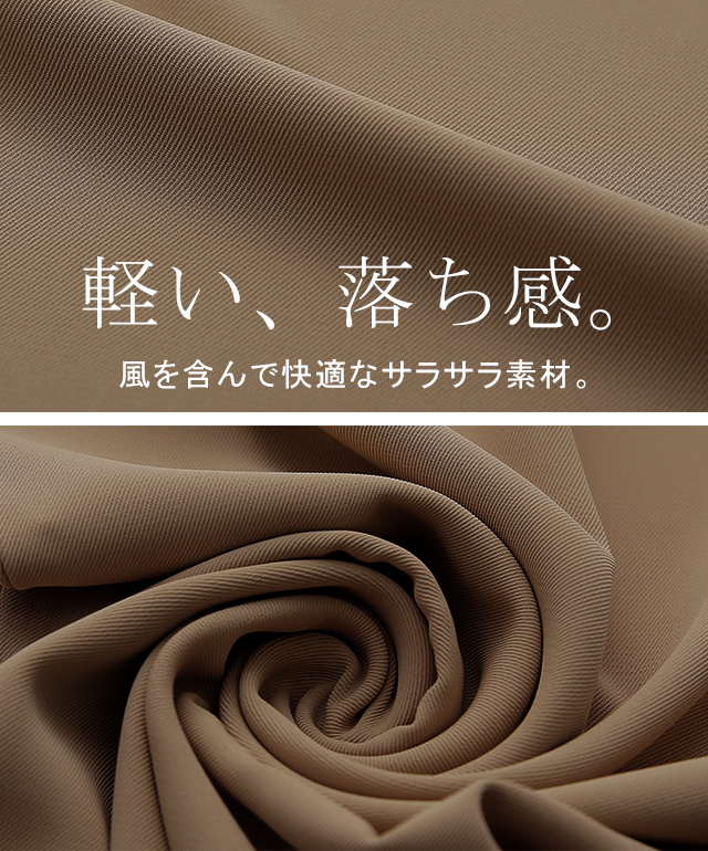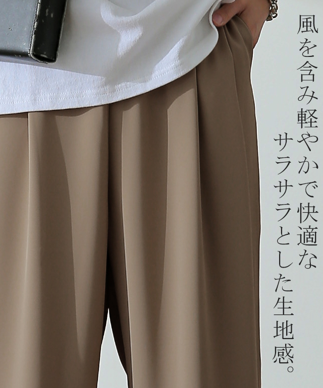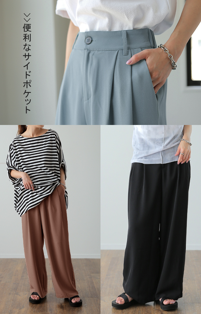 ウエストタックのきれいな縦落ちシルエットで女性らしい腰回りを演出します。