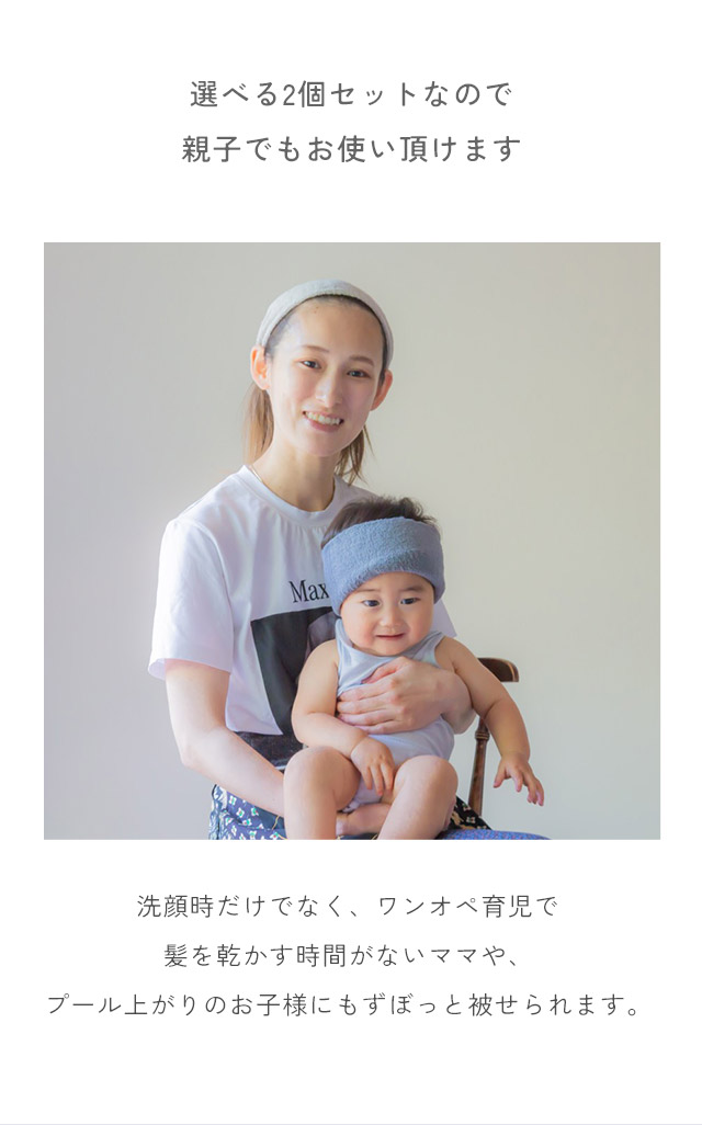 【選べる2枚セット】ふわふわ吸水 パイル ヘアバンド 洗顔 お風呂上り コットン100% 綿 シンプル かわいい ヘアターバン 日本製 レディース メンズ 汗止め おしゃれ スポーツ プール ベビー キッズ 赤ちゃん 子供 親子 ターバン 幅広 タオル