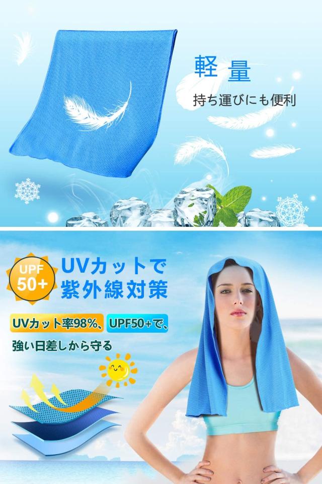 - スポーツやウォーキングの際に使おうと思い購入しました。 水にさっと浸かるだけで、とても気持ちがよかったです。