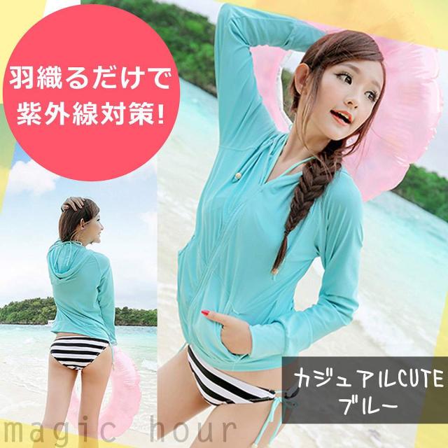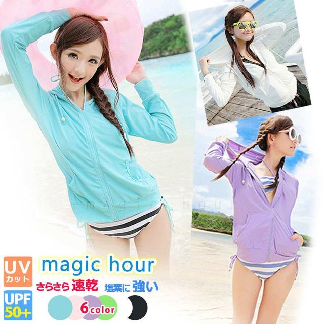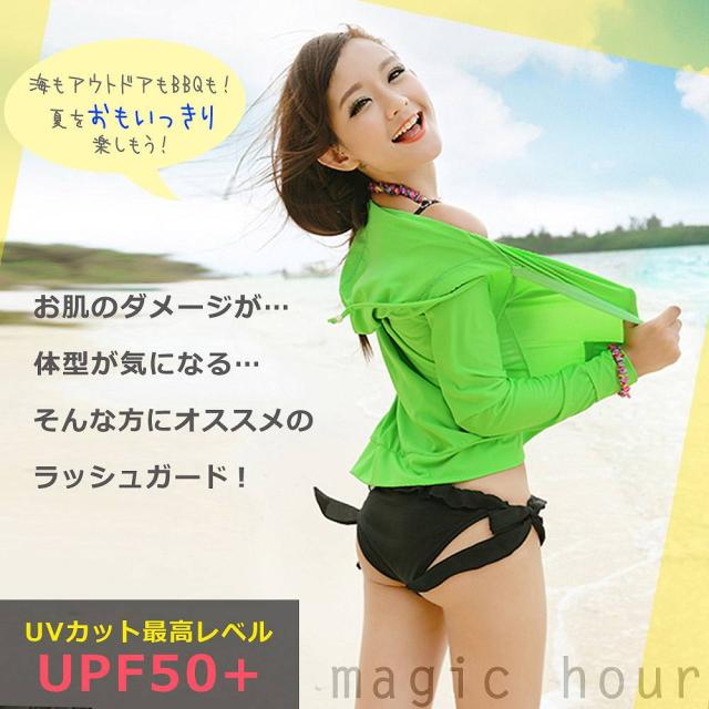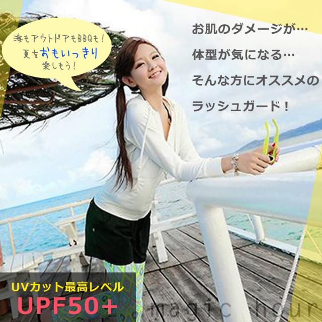 送料無料◆ ラッシュガード レディース 水着 長袖 ジップアップ フード付き ラッシュ パーカー ◆