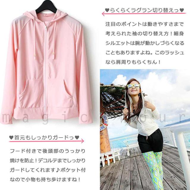 送料無料 ラッシュガード レディース 長袖 UVカット ジップアップ パーカー 水着 フード付 ラッシュパーカー UPF50 日焼け防止 体型カバー ピンク ブルー 白 黒