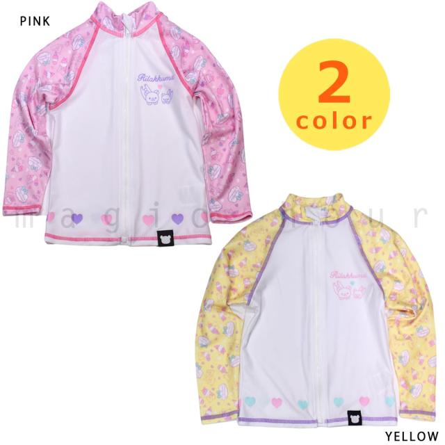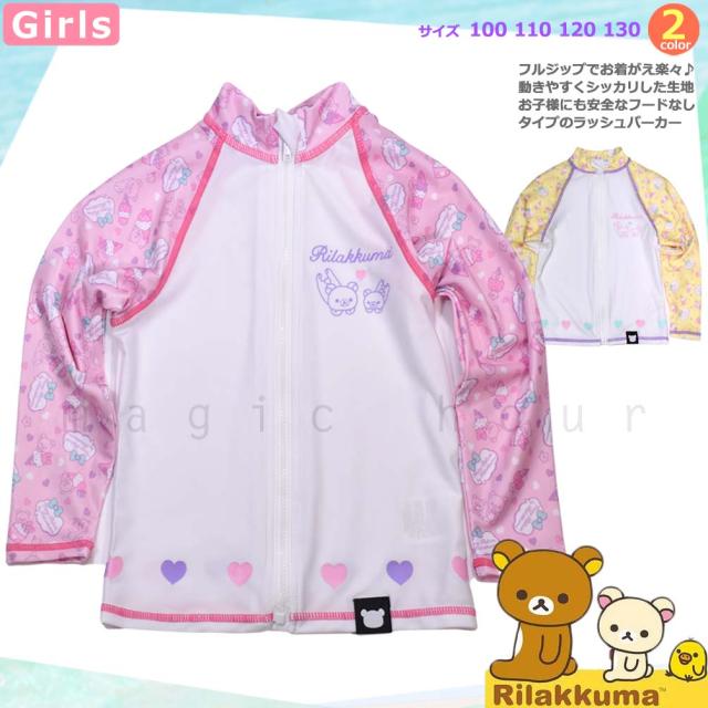 送料無料 ラッシュガード キッズ 子供 長袖 UVカット 水着 女の子 リラックマ ガールズ ジュニア ジップアップ パーカー UPF50+ 女児 ピンク 100 110 120 130cm