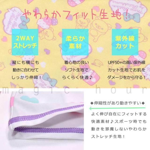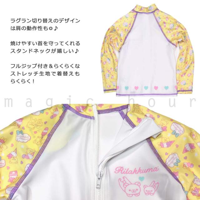 ◆ ラッシュガード キッズ ジュニア ガールズ 長袖 リラックマ サンリオ キャラクター UVカット フルジップ ラッシュ UPF50+ ◆
