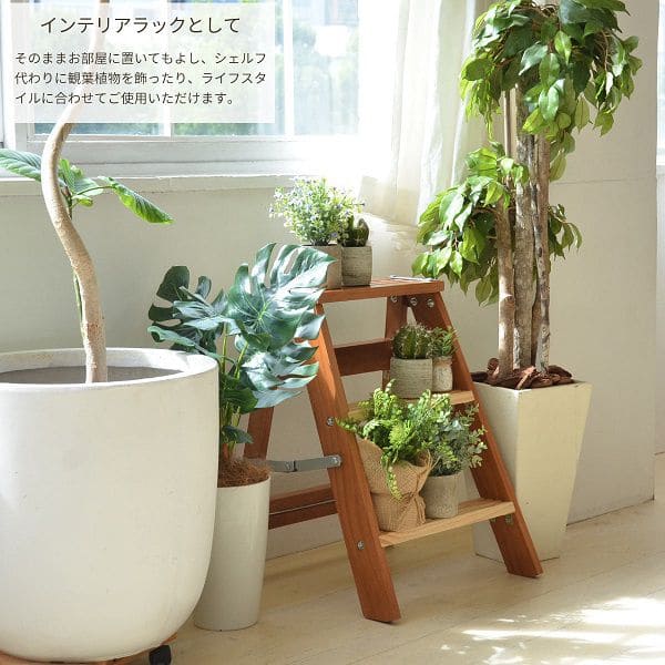 軽量 コンパクト 洗車 持ち運び 三段 室内 花台 ラダーラック 玄関 折り畳み 天然木 スチール 便利 安全 プランター台 格安