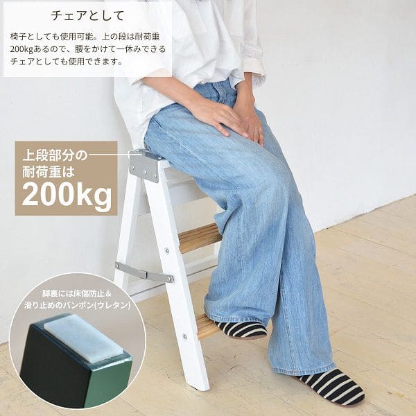 踏み台 折りたたみ 木製 スチール スリム 椅子 薄型 脚立 おしゃれ 軽い 三段 ステップ 耐荷重200kg ガーデニング 台 スツール 木目 家用 インテリア キッチン