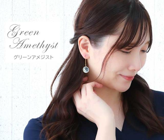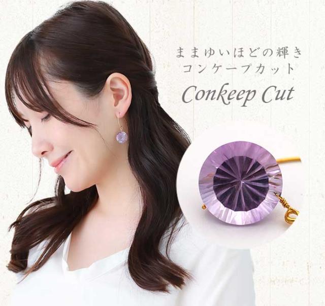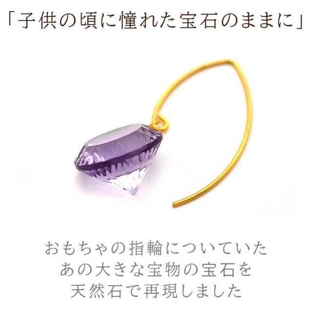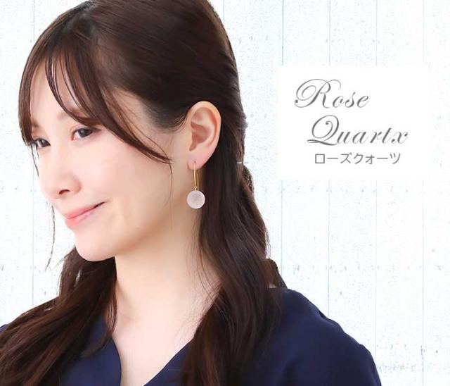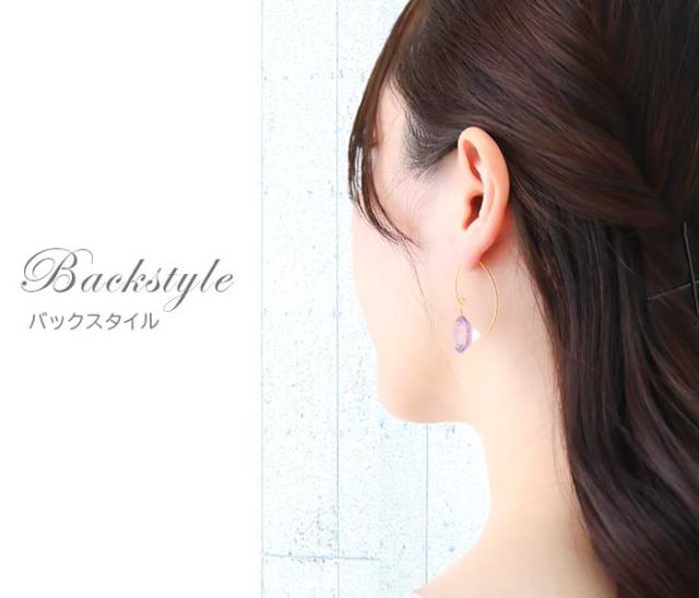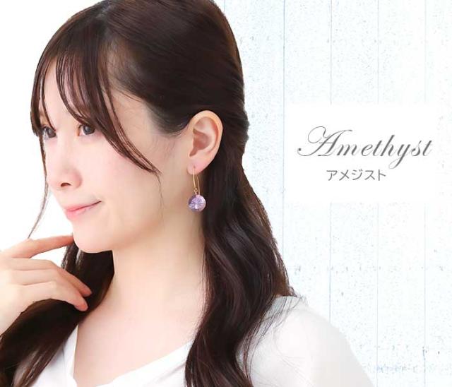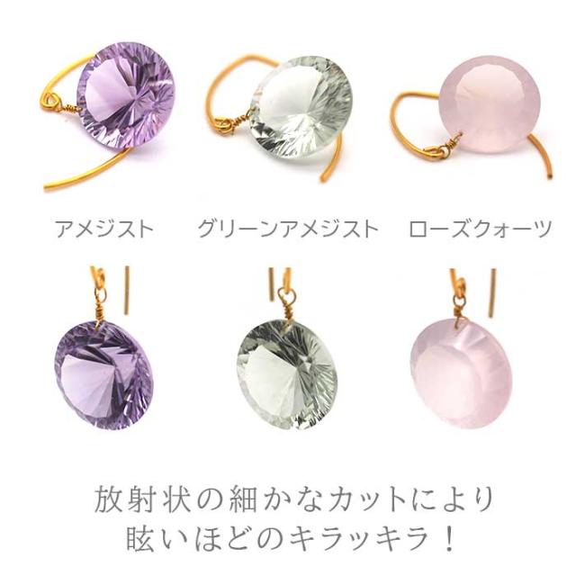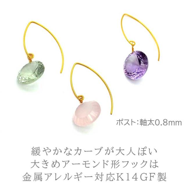 大粒天然石 フックピアス アメジスト グリーンアメジスト ローズクォーツ 品質保証書つき 1個 片耳 コンケープカット アーモンド形 金属アレルギー対応 K14GF 14金