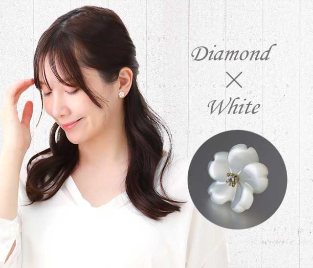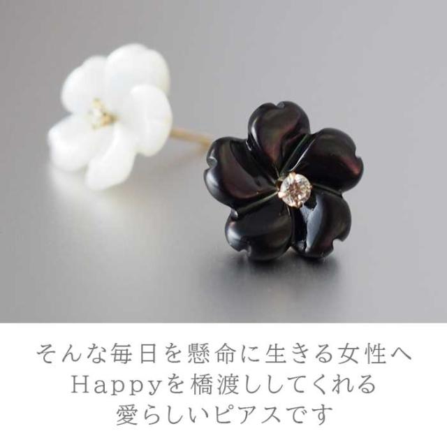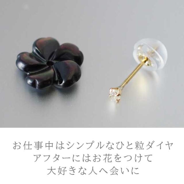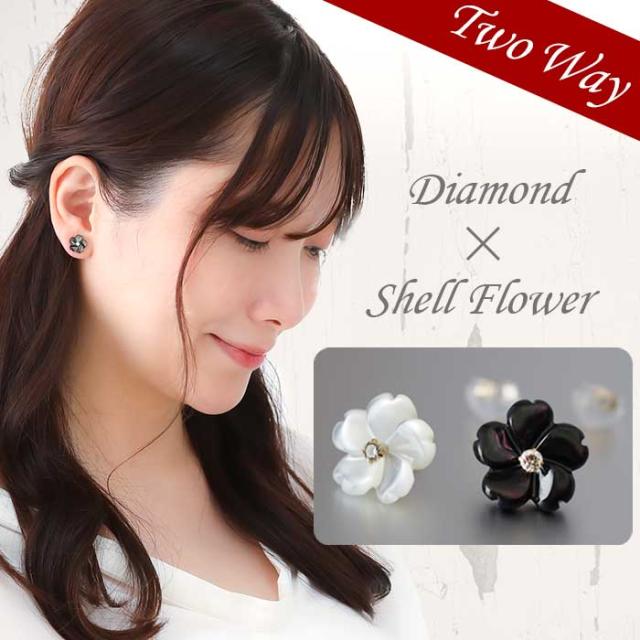 | ダイヤモンド ピアス セカンドピアス 天然ダイヤモンド ひと粒 ピアス 18金 K18 18K シェルフラワー 黒 白 花 桜 着せ替え 2Way |