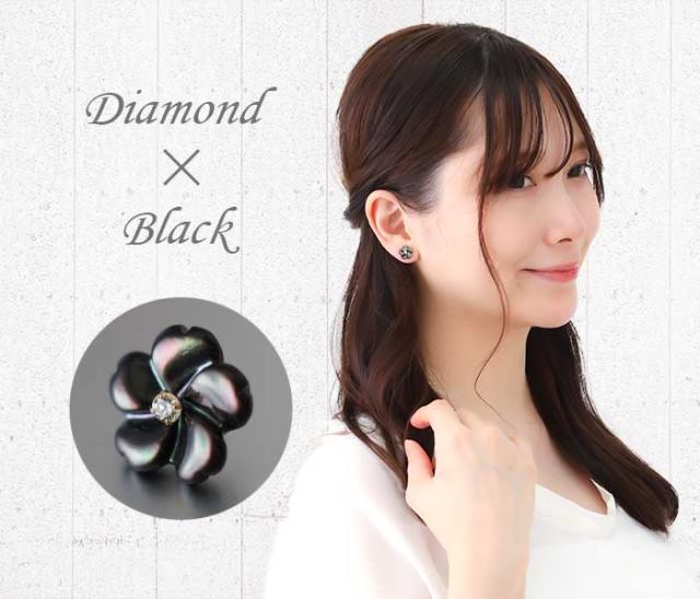 【品質保証書つき】天然ダイヤモンド 0.03ct ひと粒 ピアス セカンドピアス 黒蝶貝 白蝶貝 シェル 花 フラワー 桜 1個 片耳 着せ替え 2way かわいい 4月