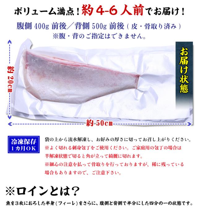 冷凍ぶり皮無ロイン(腹側400g前後/背側500g前後)