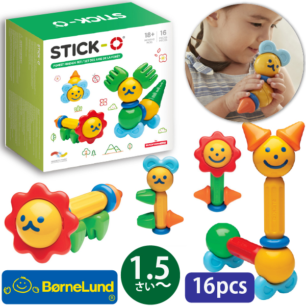 Bornelund ボーネルンド STICK-O スティック・オー フォレストフレンズ 16ピース 1.5歳 18ヶ月頃から マグネット ブロック 磁石