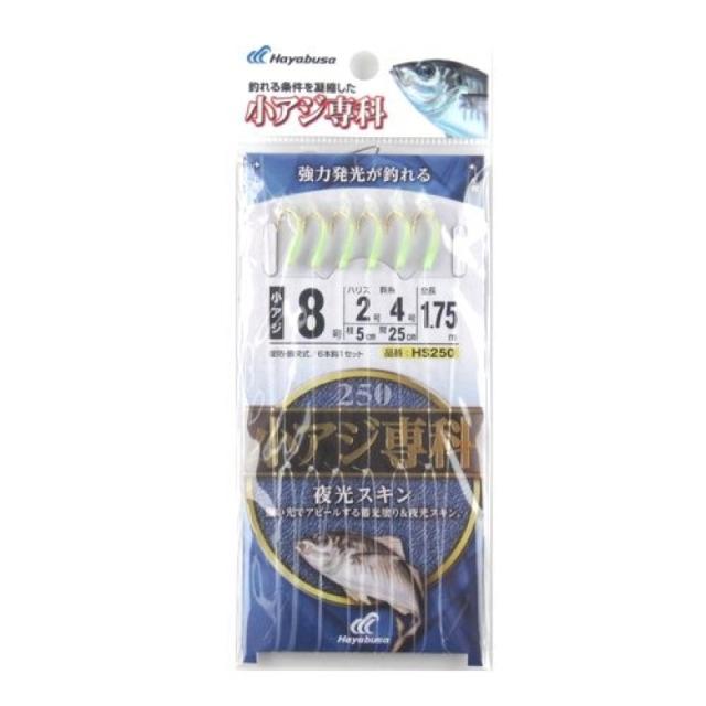ハヤブサ Hayabusa 小アジ専科 夜光スキン HS250 針8号-ハリス2号-幹糸4号 ネコポス(メール便)対象商品