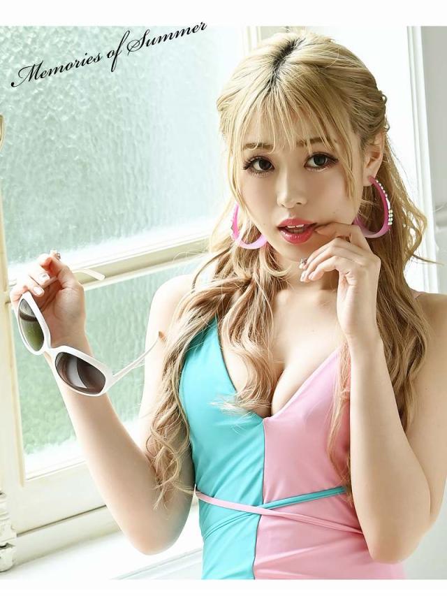 ☆お着替えしやすいモノキニ水着は夏のリゾートやプールで大活躍!シンプルなデザインにキュートなバイカラーと大胆谷間魅せがエロカワ感たっぷりな新作ギャル水着です♪