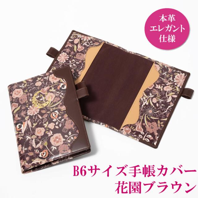 B6サイズ本革手帳カバー 花園ブラウン(エレガント) 手帳ケース ノートカバー 牛本革 おしゃれ ビジネス ブックカバー ペンホルダー付き ペン入れ 大人 日記 スケジュール 日本製 バタフライストッパー付き レザー カードポケット付き 写真ポケット付き ギフト 贈り物にも
