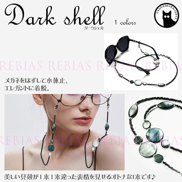 メガネチェーン 「ダークシェル」大人の雰囲気漂うシックな貝殻、落ち着いた感じでワンポイントのアクセサリーとしても使えます。