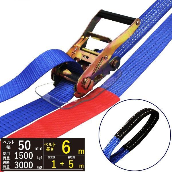 ラッシングベルト アイタイプ1.5ton 幅50mm×長さ1+5m ベルト荷締め機 ワッカ シボリ縫製 75159 区分60S