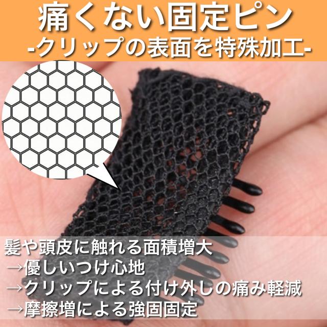 固定ピン ヘアピース 部分カツラ ポイントピース ポイントウィッグ 2個セット 特殊繊維加工 かつら用ピン ウィッグ エクステ 部分ウィッグ ヘアーピース トップピース ワンタッチ 固定金具 やさ肌クリップ ブラック 黒 Luce brillare ルスブリラーレ