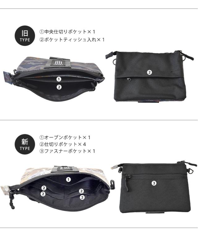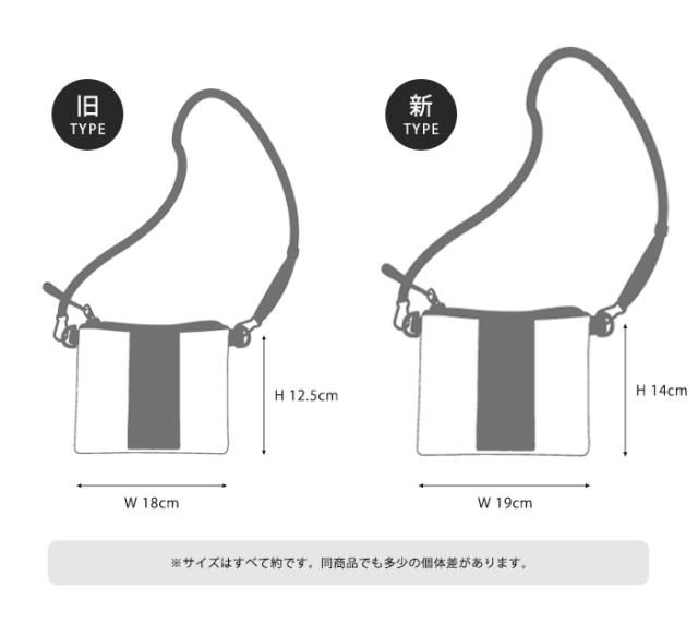 大人気のベストセラー商品がリニューアル!一回り大きくなり、より多くの小物を収納できるサイズが追加されました。デザインと仕様はそのままに、使いやすさをさらに追求。旧タイプと新タイプからお選びいただけます。旧タイプはポケットティッシュが取り出しやすい背面ファスナー付き。新タイプは仕切りポケットが充実しており、中身を整理しやすい仕様です。生地の表面にはっ水加工、裏面には防水加工を施し、雨などで汚れにくく、ティッシュなども濡れる心配がありません。フロントのブランドタグ部分のスナップを外せば、リュックやベルトに通せたり、ショルダー紐をはずしてバッグの中でポーチとしても使えたりと、色々な持ち方ができます。
