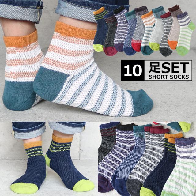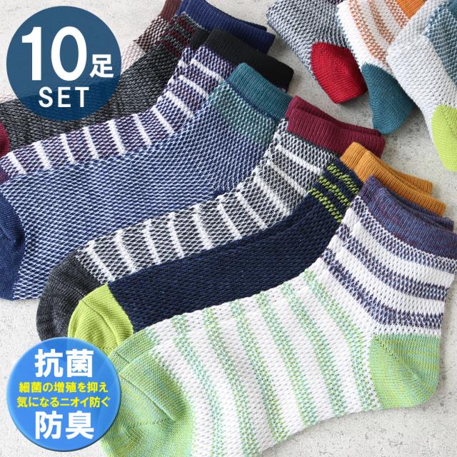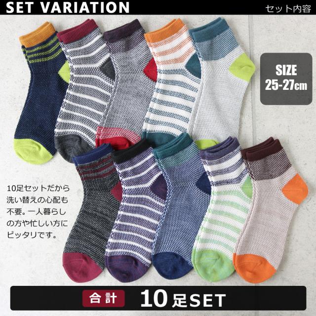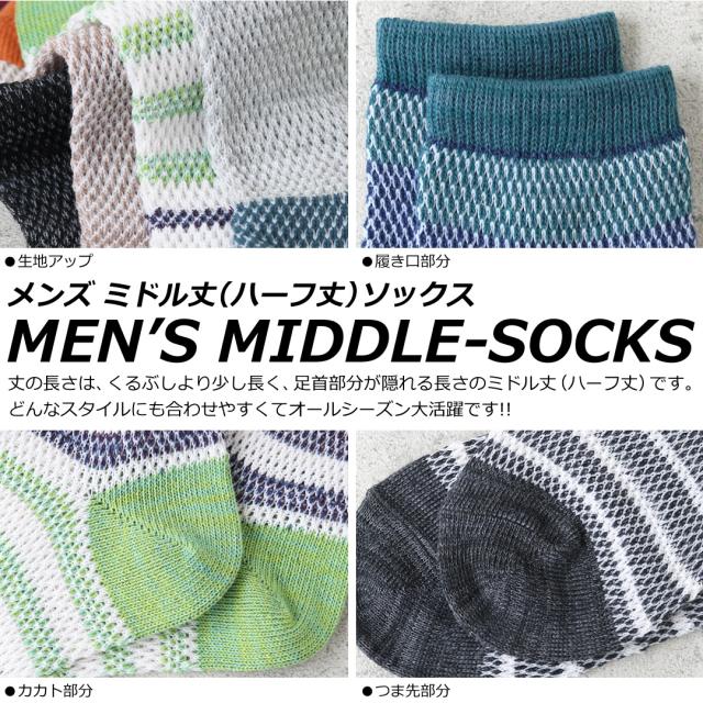 靴下 メンズ 夏用 スーパーメッシュ編み ソックス 10足セット 抗菌防臭加工 ミドル丈(ハーフ丈) 暑さ対策 25-27cm くつ下 おしゃれ 送料無料