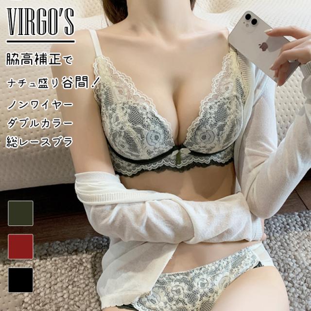 送料無料 VIRGOS 脇高補正でしっかり谷間! ンワイヤーダブルカラー総レースブラ 美胸 美背 脇高 レース 総レース 谷間 盛れるー バストアップ 育乳 ブラジャー ショーツ ブラショーツ ランジェリー インナー レディース セクシー