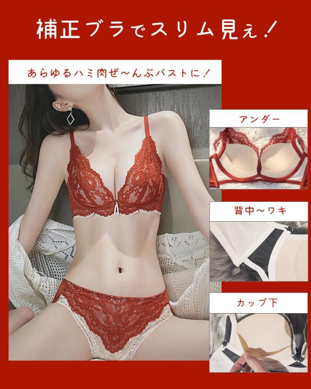 | 商品内容 | ブラジャー、ショーツのセット オススメポイント! ・脇高でハミ肉ギュッと集めてバストに!小胸さんも無理せずボリュームアップ☆ ・ノンワイヤーで着け心地ラクラク!締め付けが苦手な方にもGOOD◎ ・小胸さんもナチュラルな谷間メイク♪ ・プチプラに見えない!総レースのゴージャスデザイン! ☆スタッフの感想☆ 脇高でしっかり補正してくれるのがうれしい♪スッキリ細見え効果あるかも…! 小胸なのですが、補正効果でナチュラルにボリュームアップして感動です!! カップの浮きなどもなく、毎日着けたい!と思えるブラ♪ |